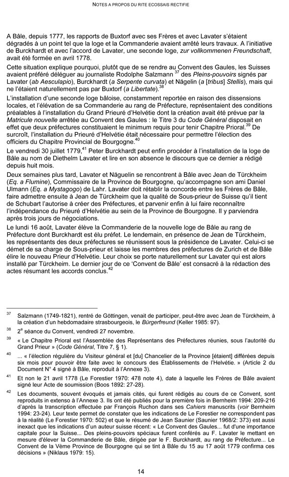 NOTES À PROPOS DU RITE ÉCOSSAIS RECTIFIÉ